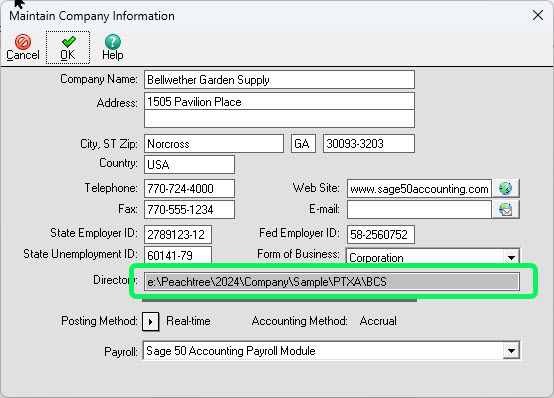 You will need to know your Sage 50 database directory. You can find this Directory by opening Sage 50, Selecting Maintain from the top menu then selecting Company Information…